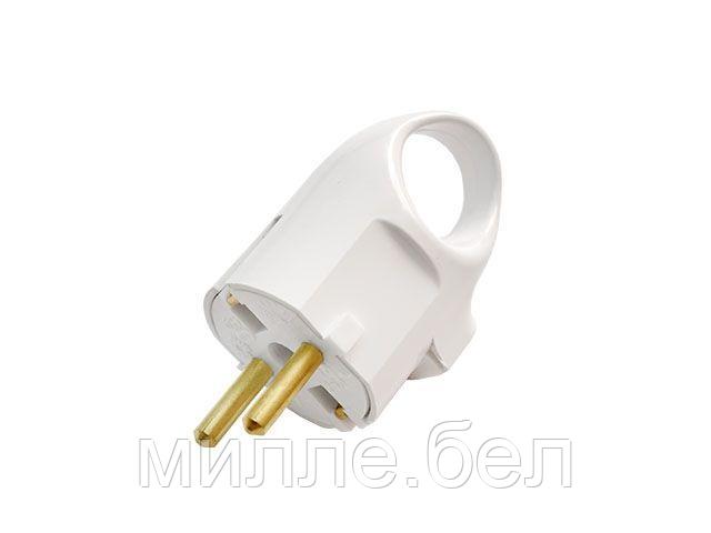 Вилка угловая с откидывающимся ушком (б/з, 6А, 250В) белая, Bylectrica