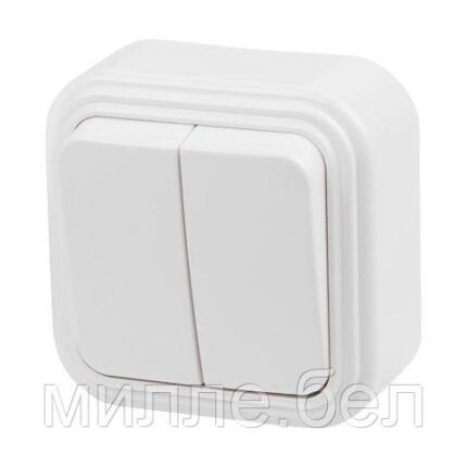 Выключатель 2 клав. (открытый, до 6А) белый, Стандарт, Юпитер (VA56-232-Б) (ЮПИТЕР)