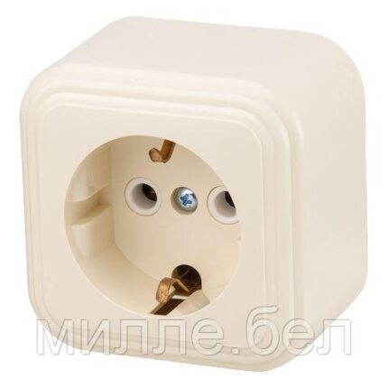 Розетка 1-ая (открытая, с/з) бежевая, Стандарт, Юпитер (RA 16-133-БЖ) (ЮПИТЕР)