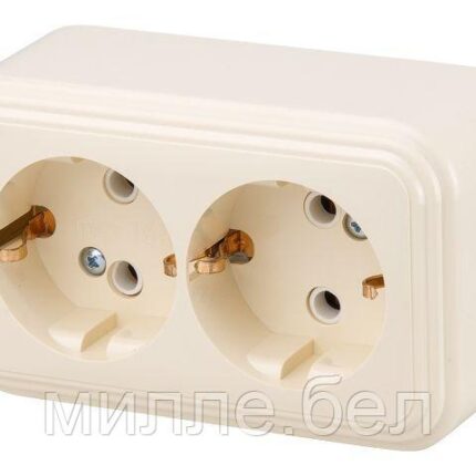 Розетка 2-ая (открытая, с/з) бежевая, Стандарт, Юпитер (RA 16-238-БЖ) (ЮПИТЕР)