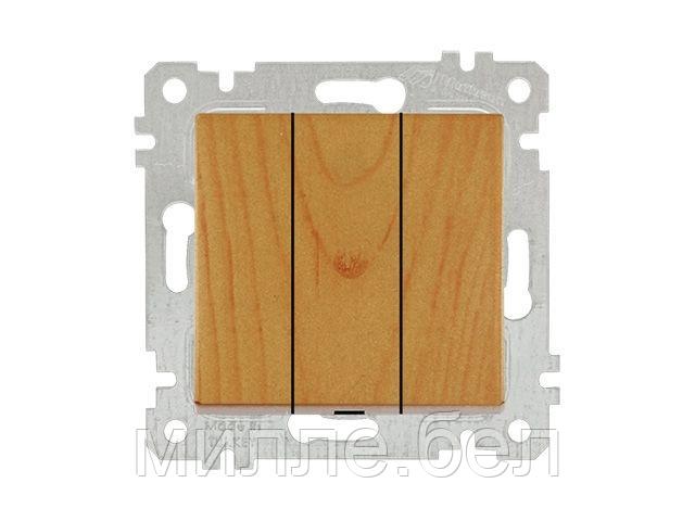 Выключатель 3-клав. (скрытый, без рамки, винт. зажим) дуб, RITA, MUTLUSAN (10 A, 250 V, IP 20)