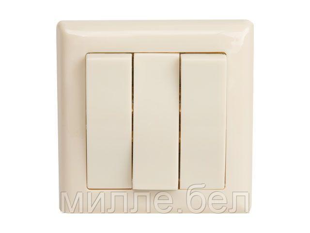 Выключатель 3-клав. (скрытый, винт. зажим) кремовый, DARIA, MUTLUSAN (10 A, 250 V, IP 20)