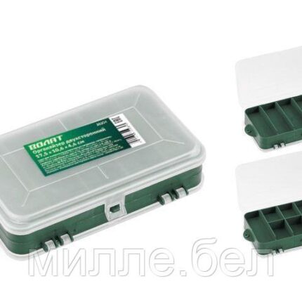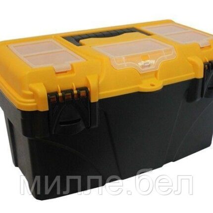 Ящик предназначен для хранения и удобной транспортировки инструментов. Подвижный лоток и два органайзера на крышке позволяют разместить необходимые инструменты и аксессуары. Ящик надежно закрывается с помощью защелок.