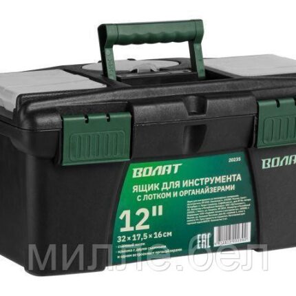 Ящик для инструмента пластмасс. 32х17,5х16 см (12″) с лотком и органайз.20235 ВОЛАТ