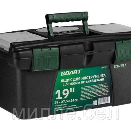 Ящик для инструмента пластмасс. 49×27,5×24 см (19″) с лотком и органайз. 20237 ВОЛАТ