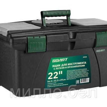 Ящик для инструмента пластмасс. 56,5×32,5×29 см (22″) с лотком и органайз. 20238 ВОЛАТ
