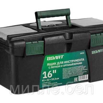 Ящик для инструмента пластмасс. 41х22х19,5 см (16″) с лотком и органайз. 20236 ВОЛАТ