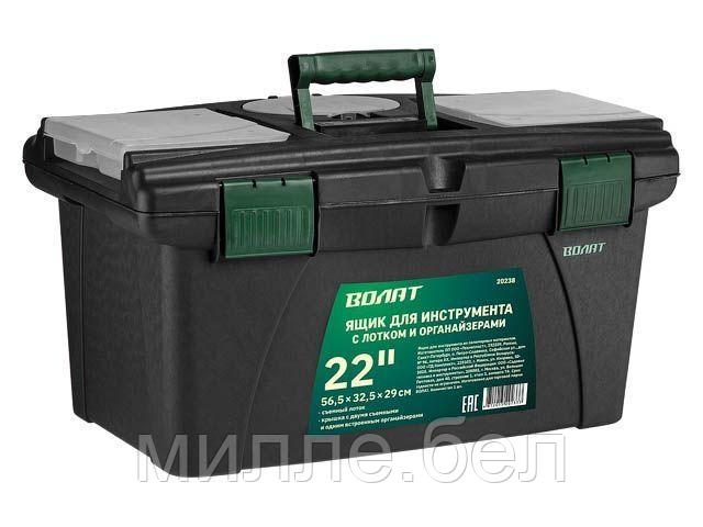 Ящик для инструмента пластмасс. 56,5×32,5×29 см (22″) с лотком и органайз. 20238 ВОЛАТ