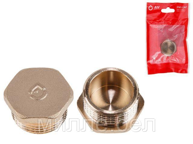 Заглушка 3/4″ нар., AV Engineering (инд. упак.) (Латунь, макс. 16 бар, макс. 100 °С)