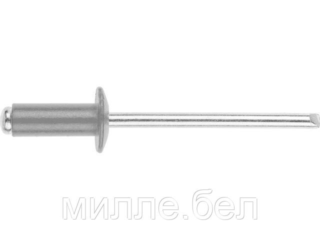 Диаметр отверстия, мм: 4,1, Толщина закрепляемого материала, мм: 4,1-6,1, Материал: корпус заклепки — алюминий, стержень (вытяжной элемент) — сталь с