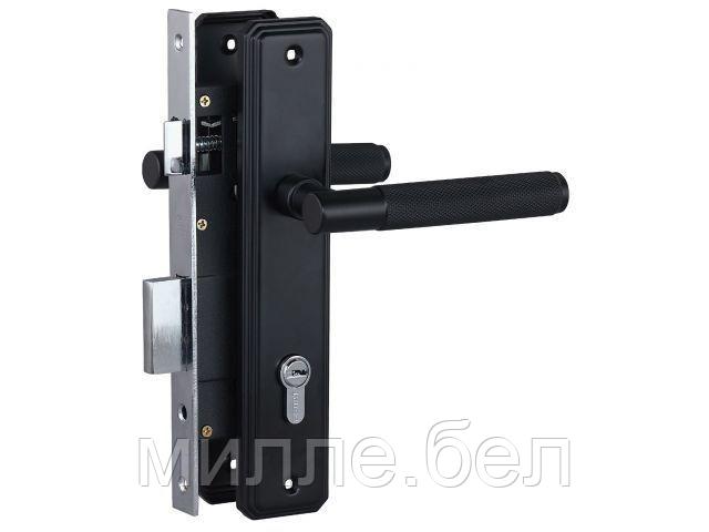 Замок врезной с комплектом ручек на планке. Предназначен для установки в деревянные двери толщиной 30 — 38 мм, правого и левого открывания. Материал ручки — прочный стальной пруток с продолжительным сроком службы. Удобная, безопасная форма с рифленой поверхностью. Материал планки — сталь. Покрытие комплекта ручек: катафорезное лакокрасочное, с высокой коррозионной стойкостью.